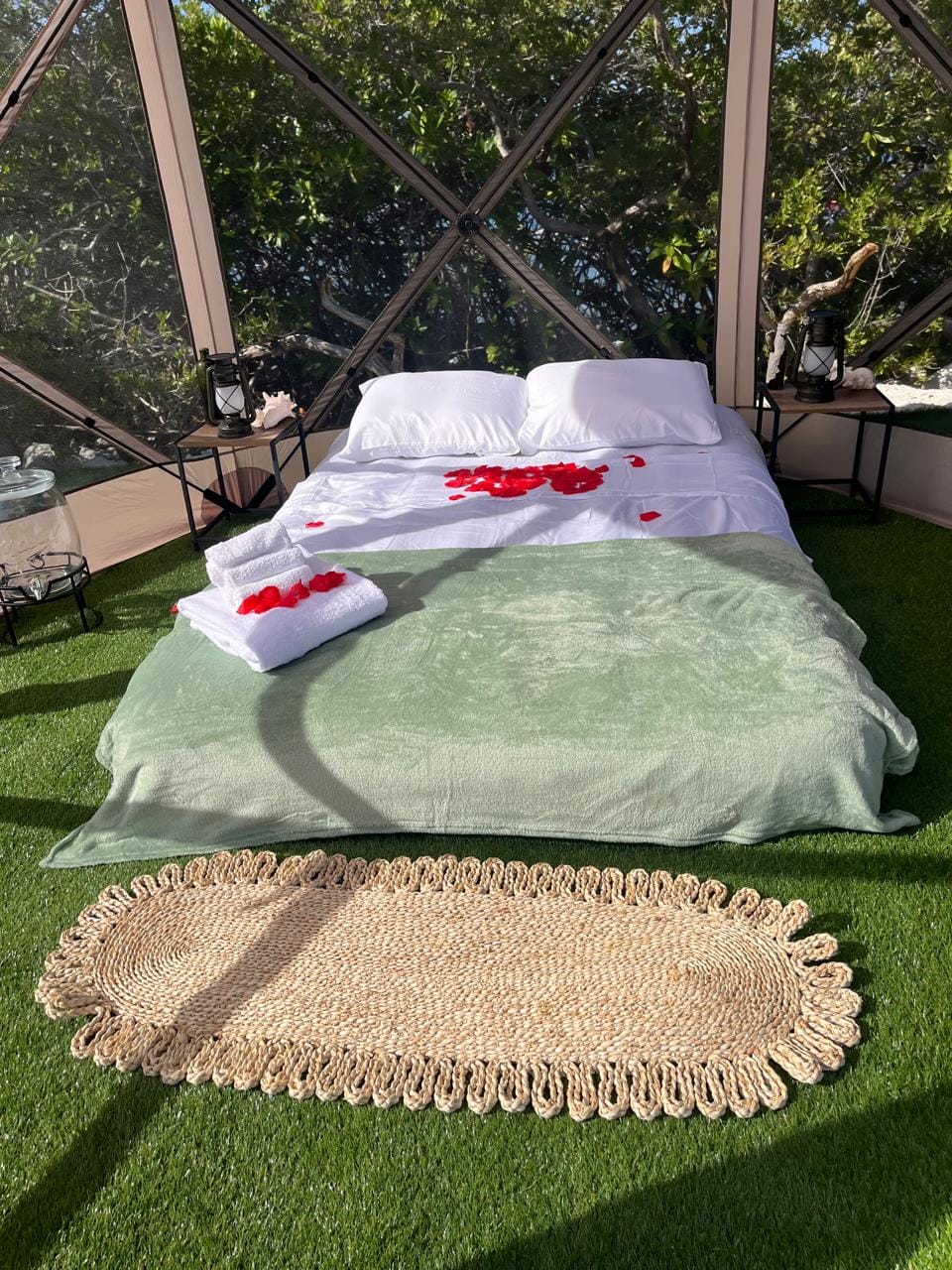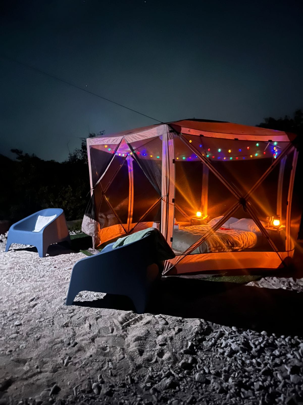 We honor the tradition while providing the essentials for a restful night. Your weather-protected tent comes with fresh linens and pillows, and you can choose the setup that fits your style: